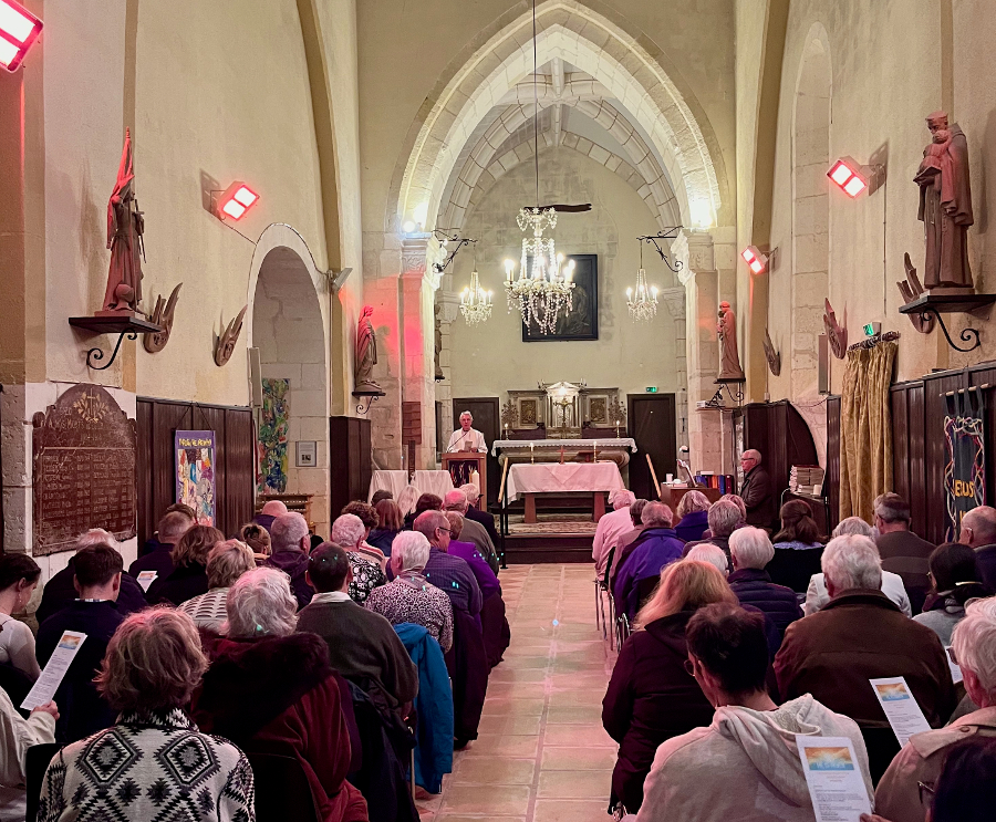 L’Eglise Saint Pierre – Saint Paul lies in the centre of the village of Bertric Burée (24320) on ‘rue des Escargots’ and can be seen for miles around. The village is just off the D708 between Riberac and Verteillac. There is a large car park nearby.