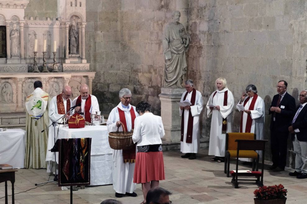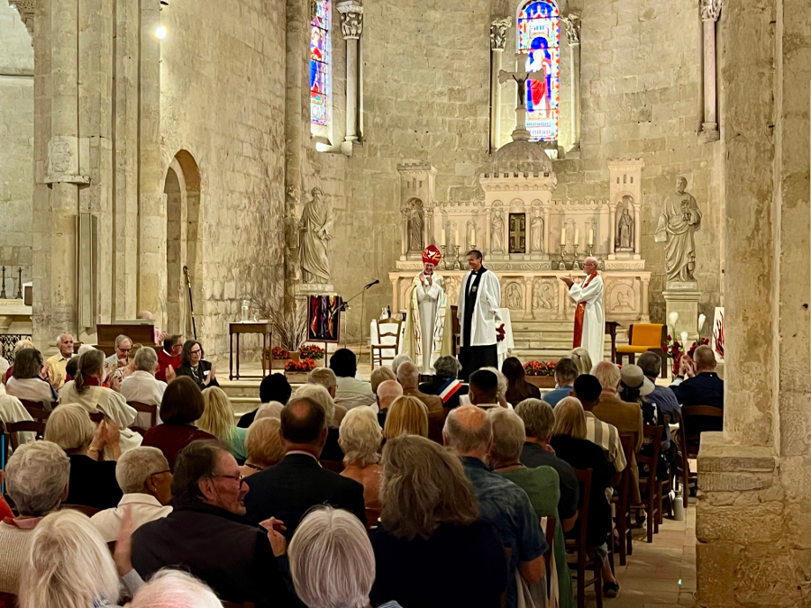 We met in the magnificent Abbaye de Saint-Ferme, for a service led by Bishop Robert and Archdeacon Peter, joined by many members of our large team of clergy and readers. The large abbey was full, and singing was led by an excellent choir with fine organ accompaniment. We were delighted to welcome the Mayor, who joined us for this inspiring occasion.